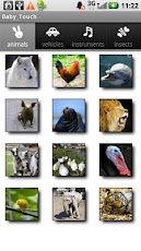 Trae simpáticas imágenes que al tocar se escuchan los sonidos. Con más de 60 fotos y fotos organizados en categorías: Animales, vehículos, instrumentos musicales e insectos.